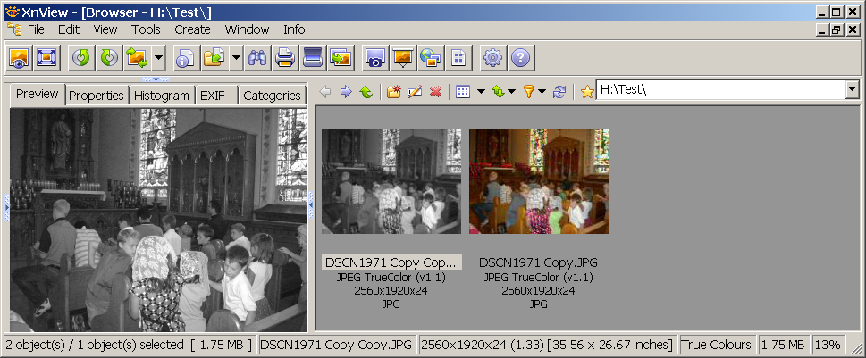 - Still in view mode, I double-clicked on the opened image. XnView then switched from the viewer to the browser, the edited image was auto-saved, and the thumbnail was updated.