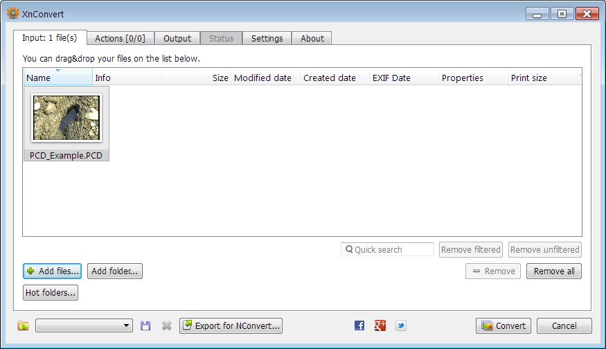 There is no guide to the operation of XnConvert as far as I know, but the basic operation and most options should be evident from examination of the tabbed interface.Oyster wrote:Can someone lead me through the steps on how to use the XnConvert 1.72 to batch convert PCD files to jpeg on a MAC
