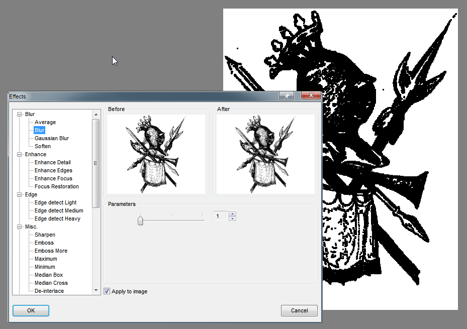 Also, I don't know if that Convert-to-Colours messes up anything, but afterward, if I run blur on it afterward, the effect is not the same as the Effect Preview.