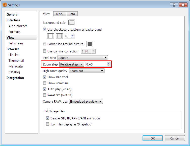 Although XnView software doesn't provide the direct control of viewing percentage available in some software, it is possible obtain custom settings using the above settings in combination with the menu View > Auto image size options.