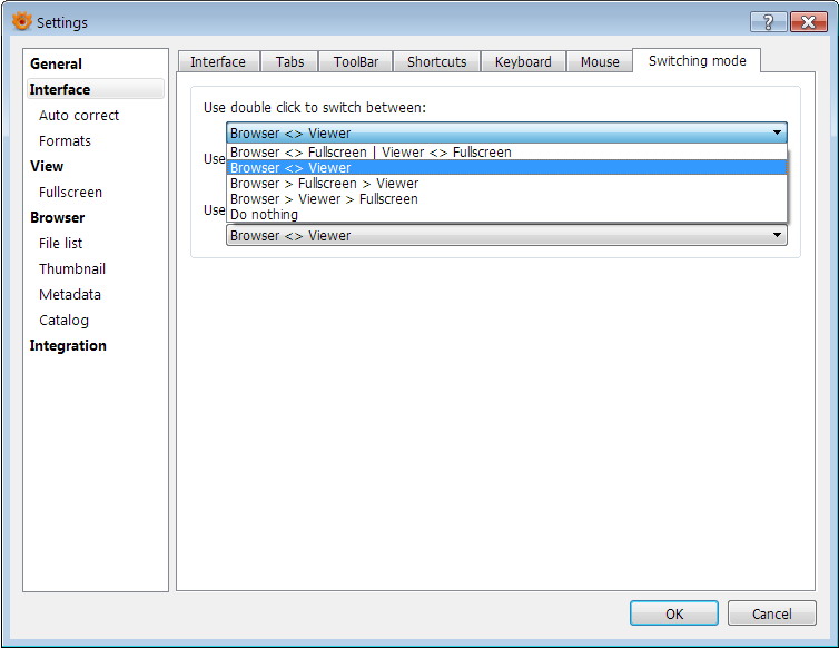 Could you check this Tools > Settings... option and see if it provide the behaviour you need:Octopuss wrote:2) Is there any way to make the program NOT open images in fullscreen mode after doubleclicking on them? As in, the original XnView behavior. I have whole bunch of EXIF data added into the program's title bar just like in the original XN and it's no use now. I'd like images to open in "full view" mode like if you did so from the Xn's browser.