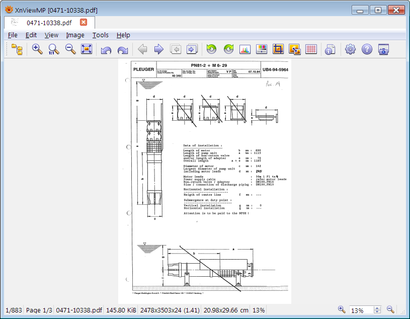 Then I installed XnView MP 0.79 x32. The same, I can open the PDf document in portrait orientation but I can´t see the whole document or drawing.