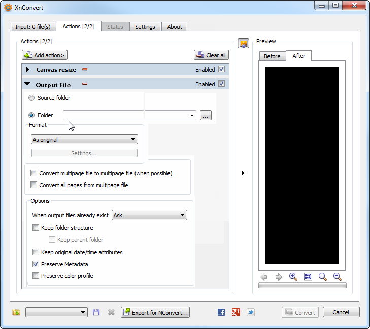 Feature request: A new category of Actions > File Operations. The new actions would essentially contain many of the same options provided in the "Output" tab. However by making this tab an Action, I could efficiently perform multiple operations on a single file. The Output tab would then become redundant.
