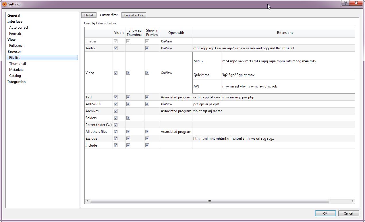 Could you please post a screenshot of your configuration in Tools » Settings... » File list » Custom filter?