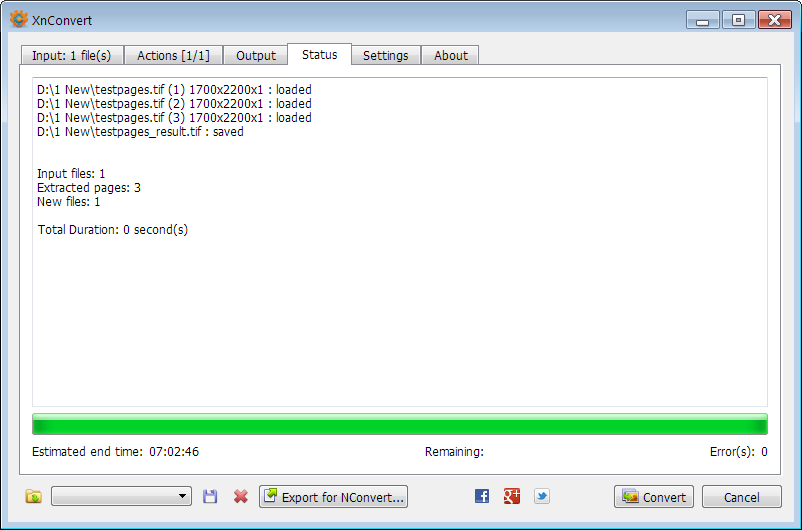 flatleyld wrote:I created a multi-page tiff, with xnview, and tried to convert it. No dice. I still only end up with the first page. After the conversion, XnView only shows the first page.