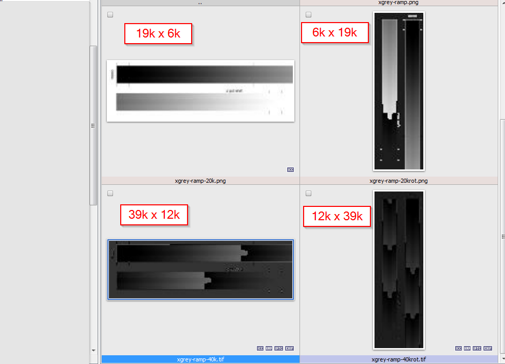 When browsing a folder with very large images (e.g. 20.000 x 20.000 pixels), the thumbnails of these images are dark in brightness.