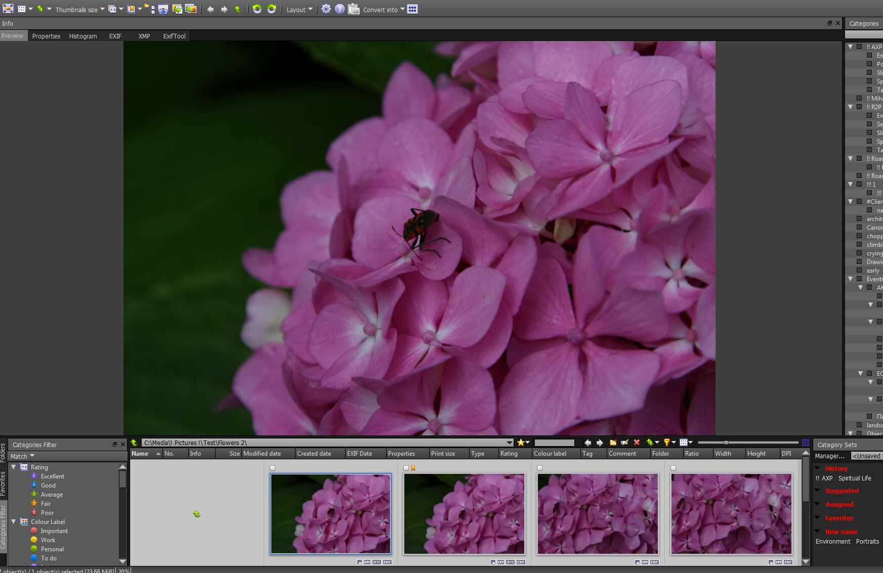 I'm sorry to dig up such an old thread; I'm a new user, and maybe I'm missing something. I'd like to use the categories more, but I find it very weird that they cannot be assigned from the image browser. This is like the #1 feature I would like to have, as I don't have multiple monitors and would find it very helpful to be able to achieve this from within the viewer - especially since when leaving the viewer, I'm not aware of a quick way to jump to the last image that was viewed.