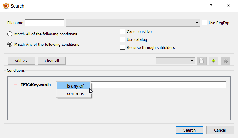 For example, currently the only options that are available are "is any of" and "contains" as shown in the following image: