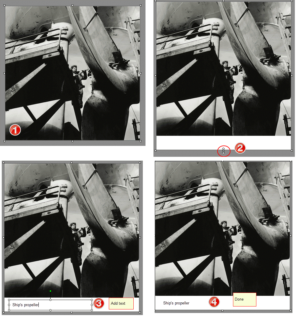 - allow to add space (drag borders) so text can be added there, i.e. outside the image (see my example),