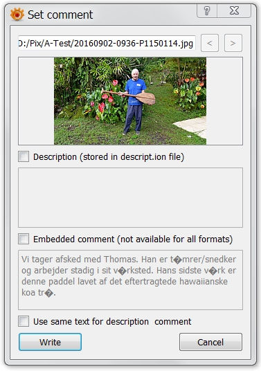 Xntriq: Copying all the comments to the IPTC field can also be done with exiftool, but it would be a lot of work for the 30,000 files that I have. And besides, it would be better to improve XnViewMP so that it can correctly display the comment for different encodings of the comment field.