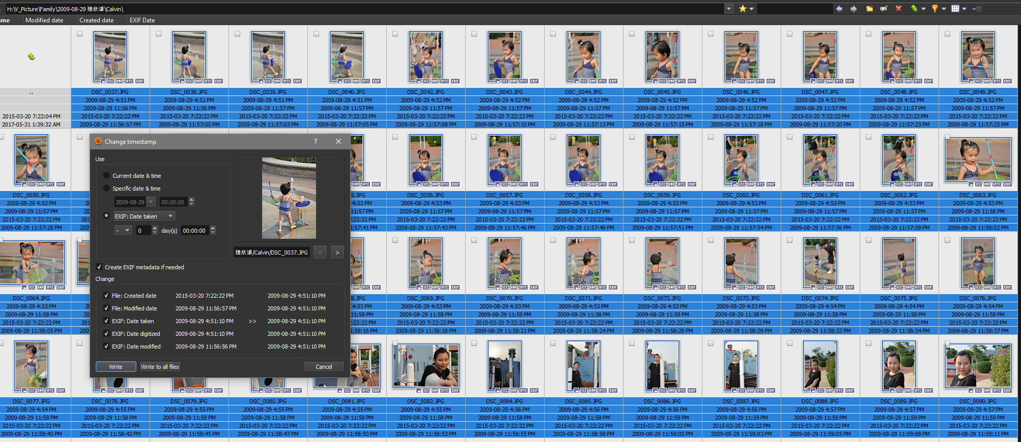 Unfortunately, it takes a while to change timestamp of 50+ JPG.
