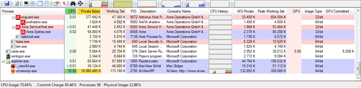 Browsing with XnViewMP to another folder with no images releases the Private Bytes usage.