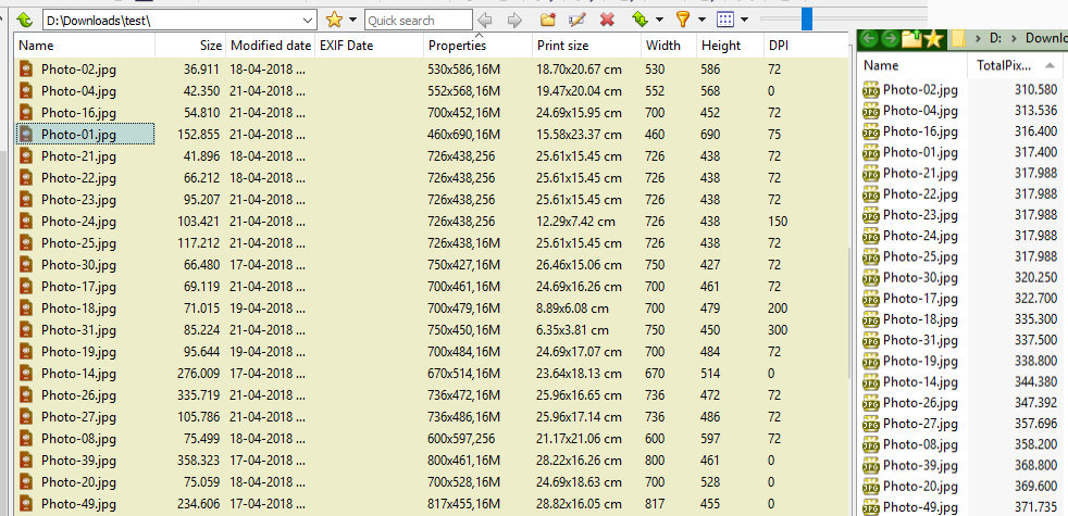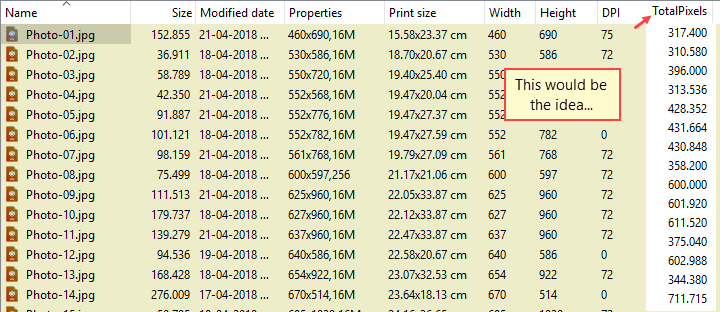 Suggestion to add a column 'Total Pixels' so one can sort on that.