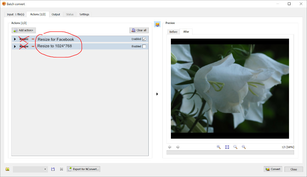 could you explain me more what you would like?Tschens wrote: Thu May 24, 2018 11:04 am This doesnt make sense for me, I dont see a reason to have more than one list. Since you can enable/disable each single action in the list, it would make more sense to rename them. Currently, each resize action is called "resize". I would rather like them to be named "Resize to 1024x768" or "Resize to "640*480".