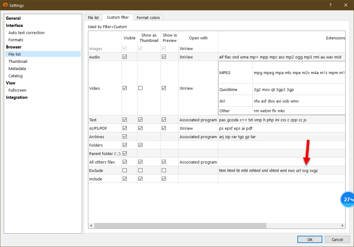 Thanks! This solved not viewing the thumbnails.Rick wrote: Sun Apr 05, 2020 2:39 pm I can see the thumbnail and here is where to look. Note: I have shut off all excludes but if you want to keep them just edit the exclude entry by removing SVG