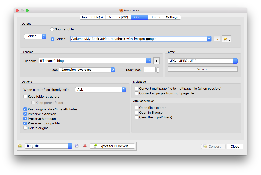 Now I open 'Batch Convert', select the 'blog.xbs', and the 'Source Folder' is no longer selected, but some weird folder: