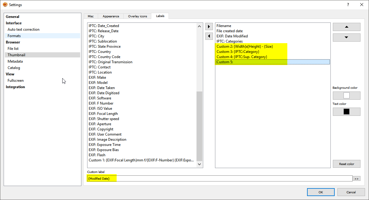 I was trying to set up some Custom labels to the thumbnails being displayed (Settings --> Browser -> Thumbnail). For every Custom Label, we have to click OK or Press Enter to implement it. That is, to set up 5 Custom Labels, you have press Enter or Ok 5 times. Isn't it annoying?