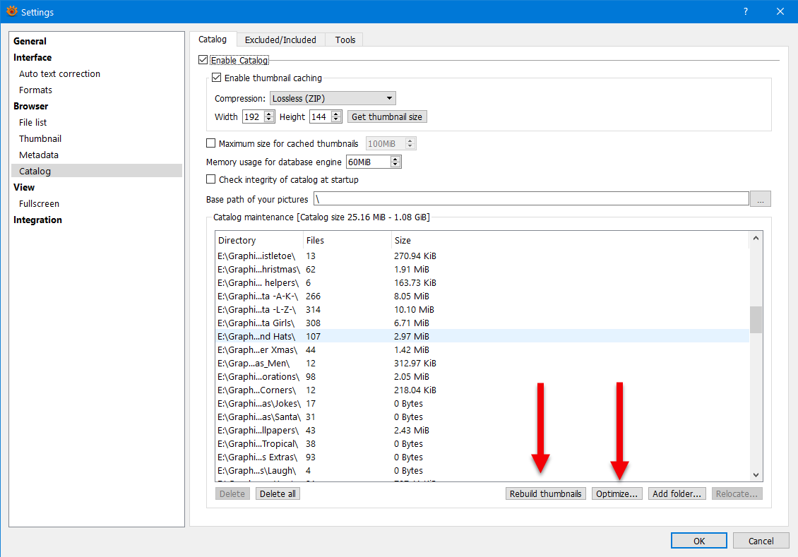 When I have a folder of very large images (>1MiB, >6000x4000), XnViewMP will often be slow about generating thumbnails. What settings are the best for speeding up thumbnail generation? Could the problem be with the thumbnail cache getting filled, and needing to be regularly deleted?