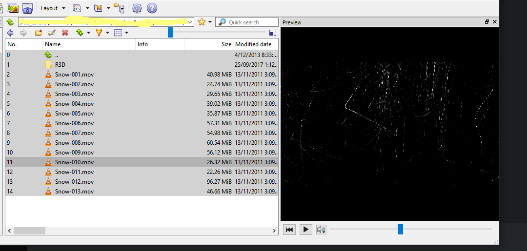 When previewing video files in XN View MP, if that video file has an alpha channel (ie. is transparent) the frames stack on top of each other (see attached screenshot of a clip of snow falling)