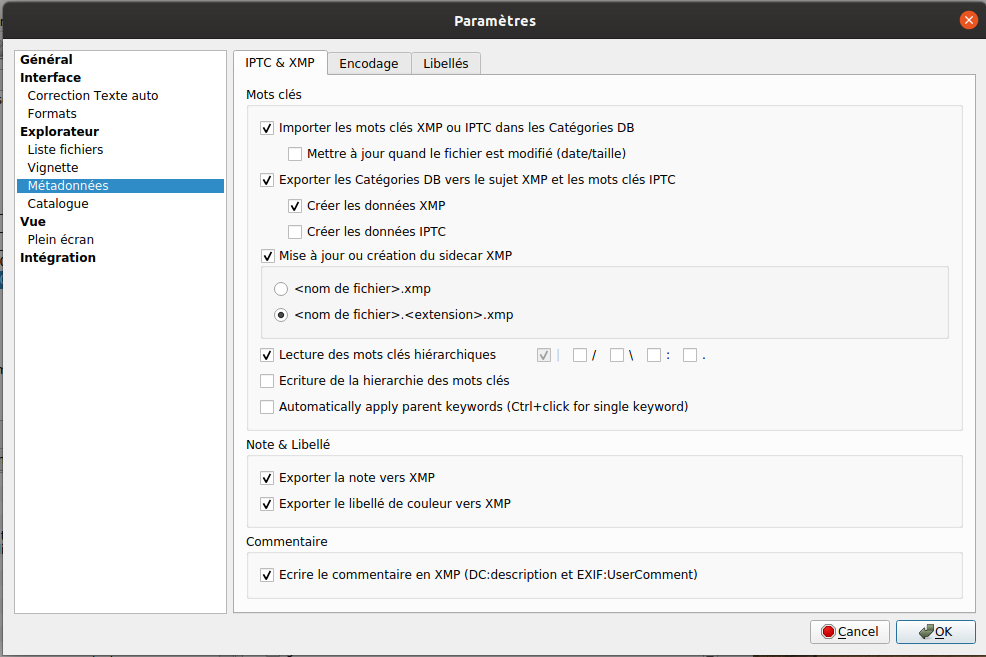 lorsque je décoche "Mise à jour ou création du sidecar XMP", le fichier est créé lorsque je modifie les notes, couleurs et catégories, puis lorsque je demande la mise à jour du fichier à partir du catalogue - pour un fichier raw, pas pour un fichier jpg.