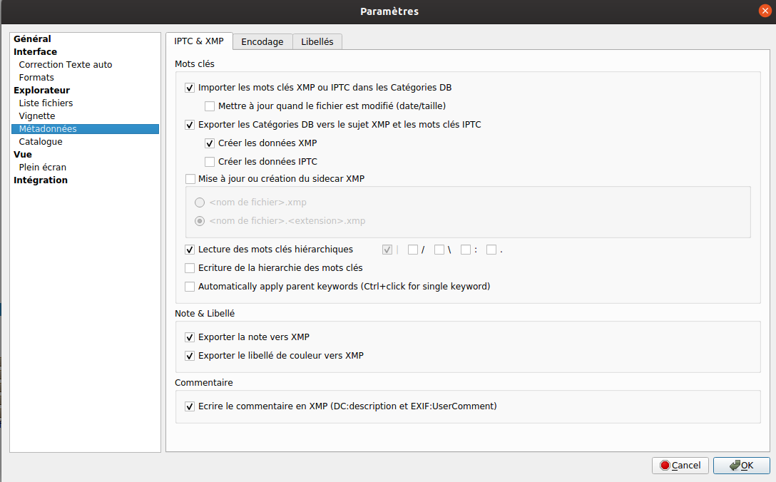 Lorsque je complète les mots-clés avec le panneaux Catégories, elles sont bien ajoutés dans un fichier compagnon .xmp.