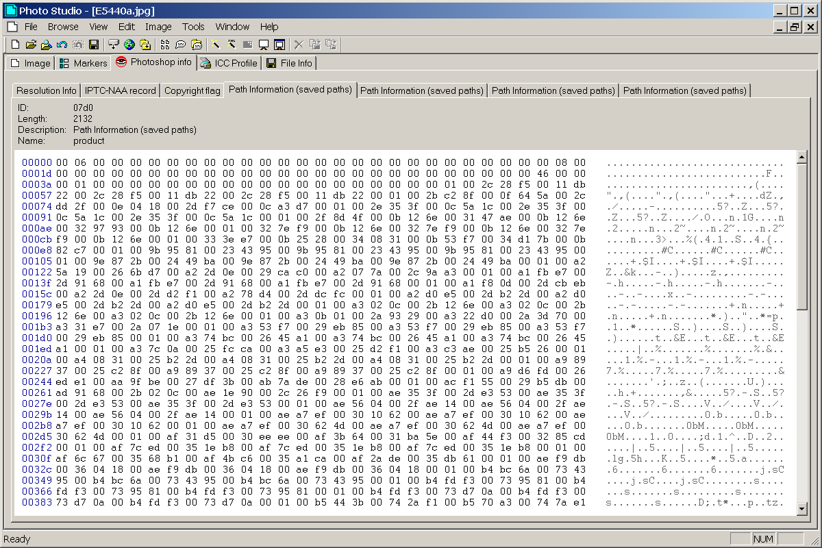 https://www.adobe.com/devnet-apps/photoshop/fileformatashtml/#50577409_69883 wrote:Image resource blocks are the basic building unit of several file formats, including Photoshop's native file format, JPEG, and TIFF. Image resources are used to store non-pixel data associated with images, such as pen tool paths.