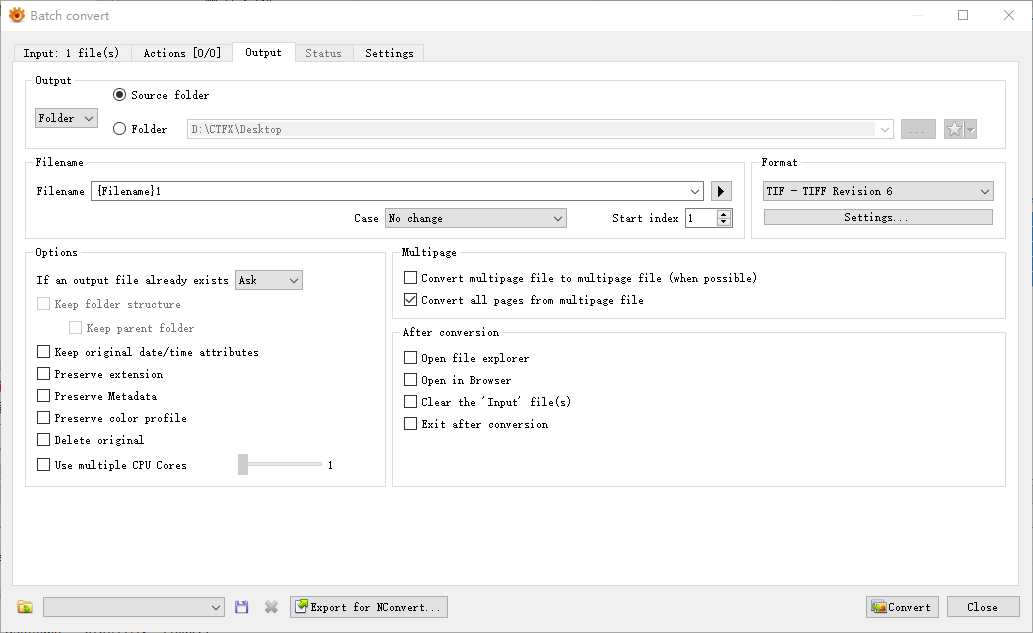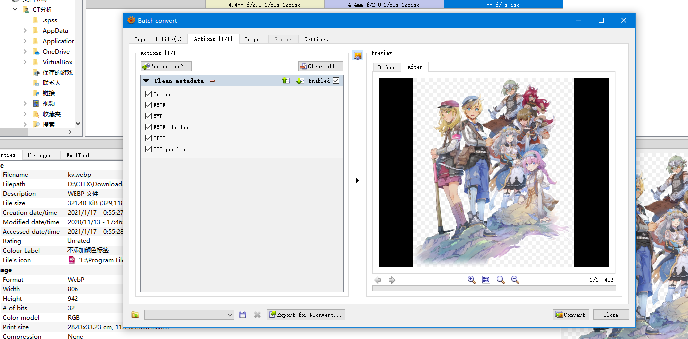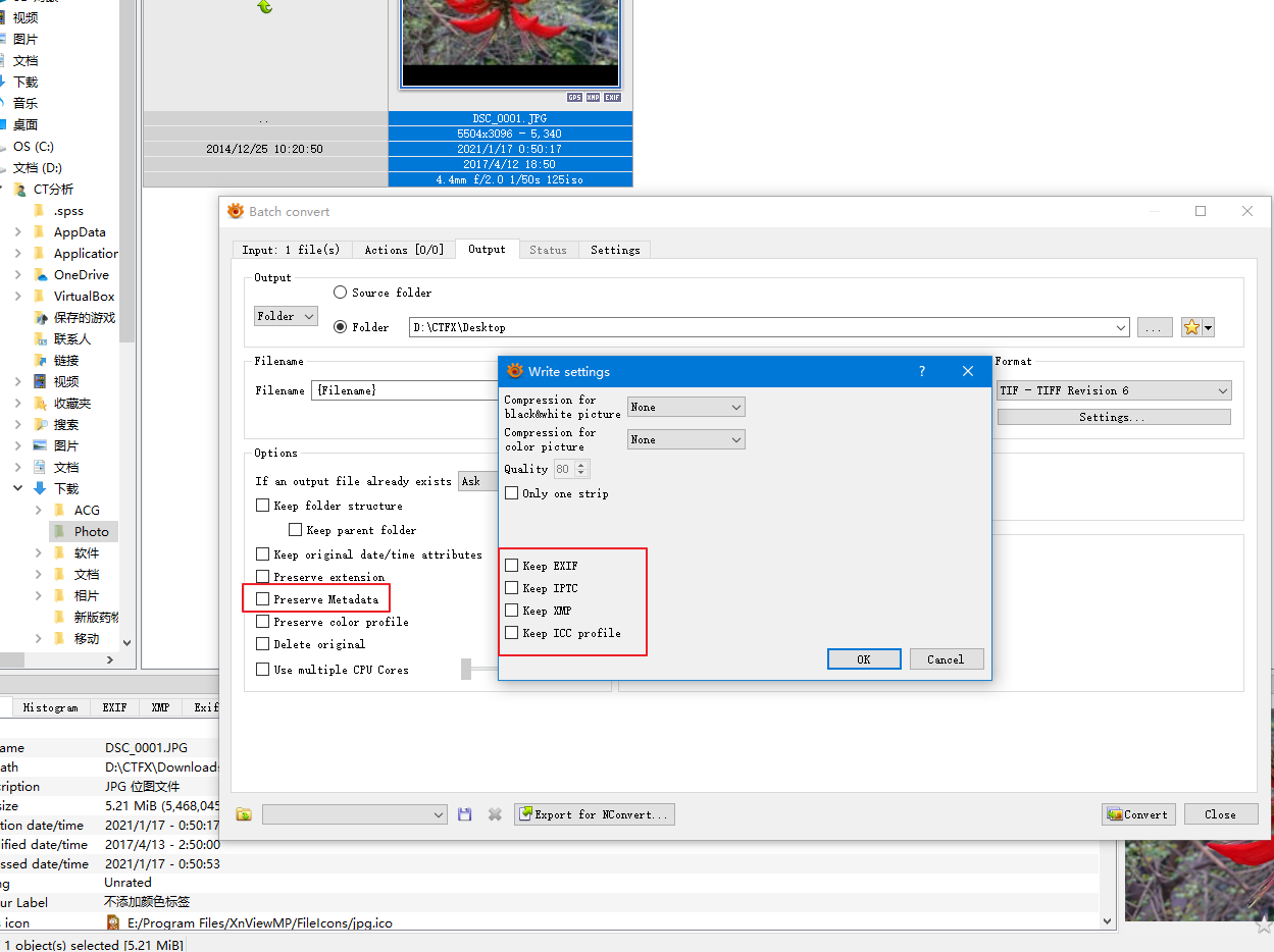 3. Convert a picture without metadata to TIF, you can even execute the remove metadata command.