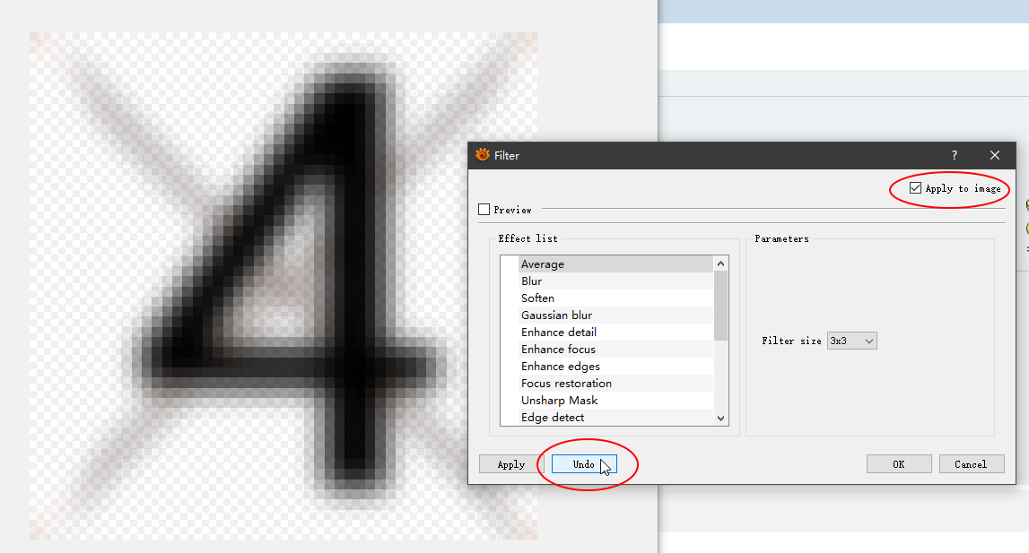 Effect: The filter is incorrectly retained in the picture result and is not undone.