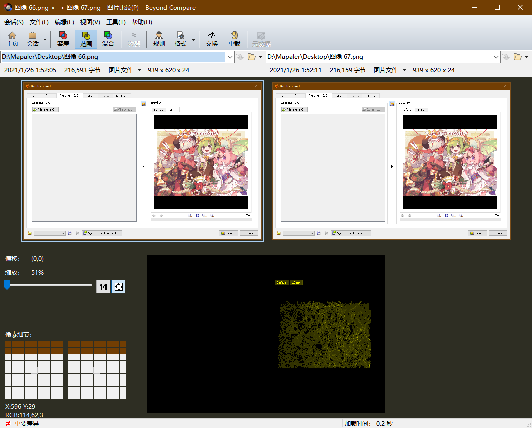 There is a difference in the Previewed - Before This makes it impossible for me to compar front and rear details by pixel