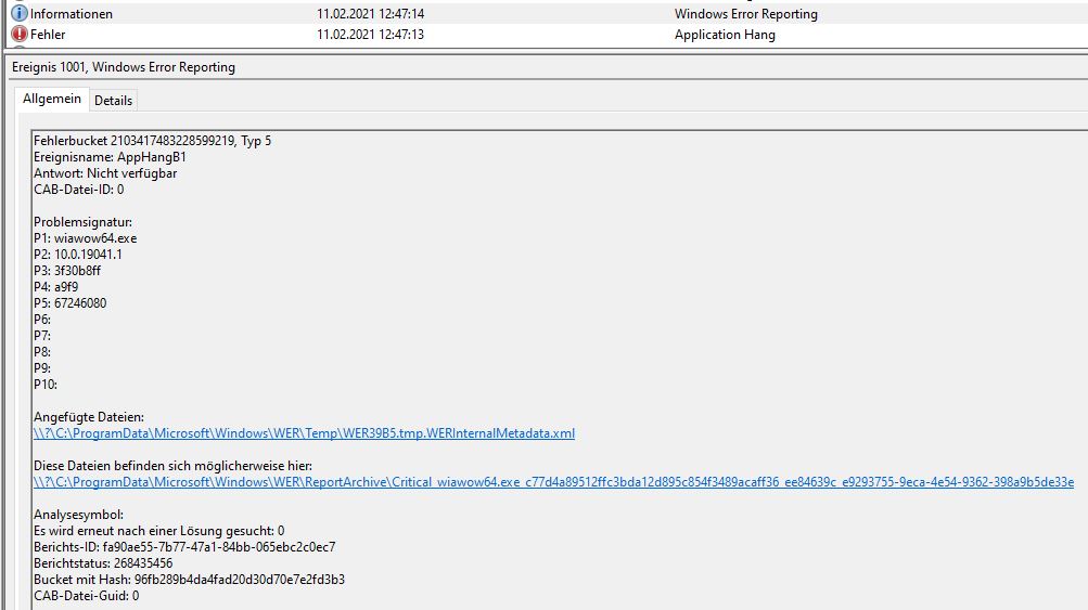 When starting the import the application "wiawow64.exe" crashes, see screenshot attached.