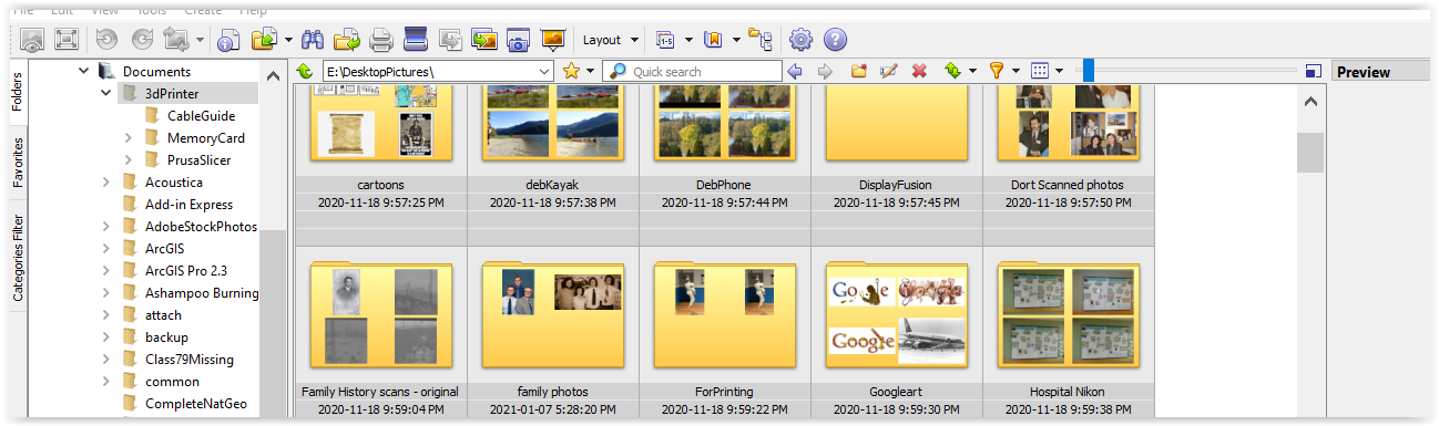 Somehow the "folder" view pane - the leftmost panel - is not syncronizing with the display in the thumbnails panel (in the middle in layout 7).