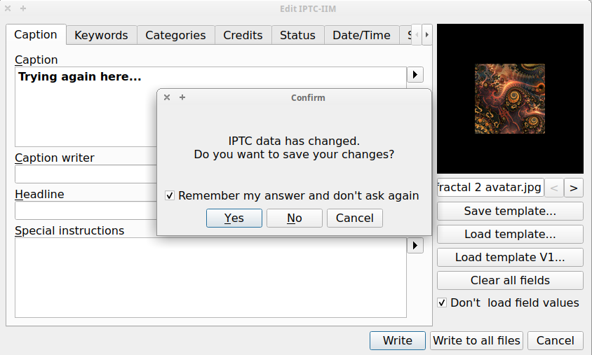Subject: 0.98.2: Using Edit IPTC-IIM with a batch of images keeps presenting a Confirm (Save) dialogue after metadata changes are made