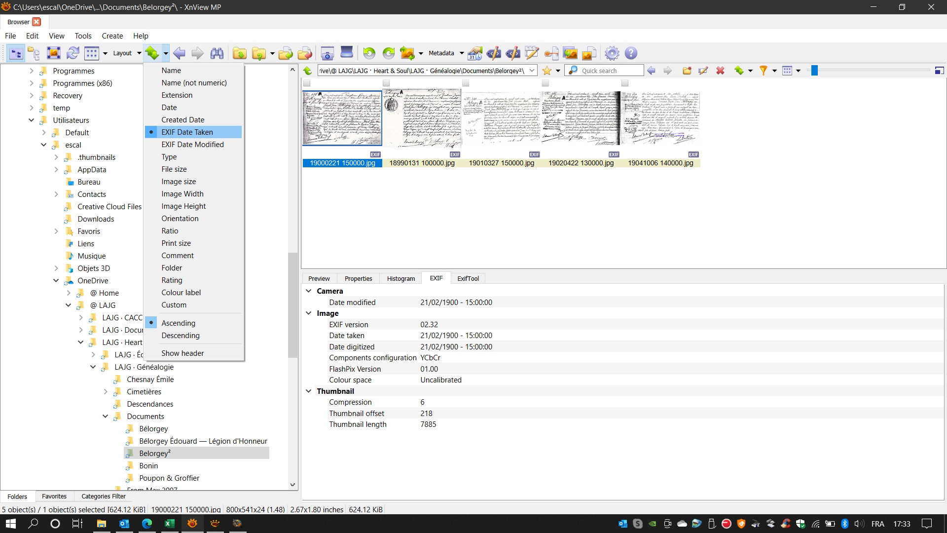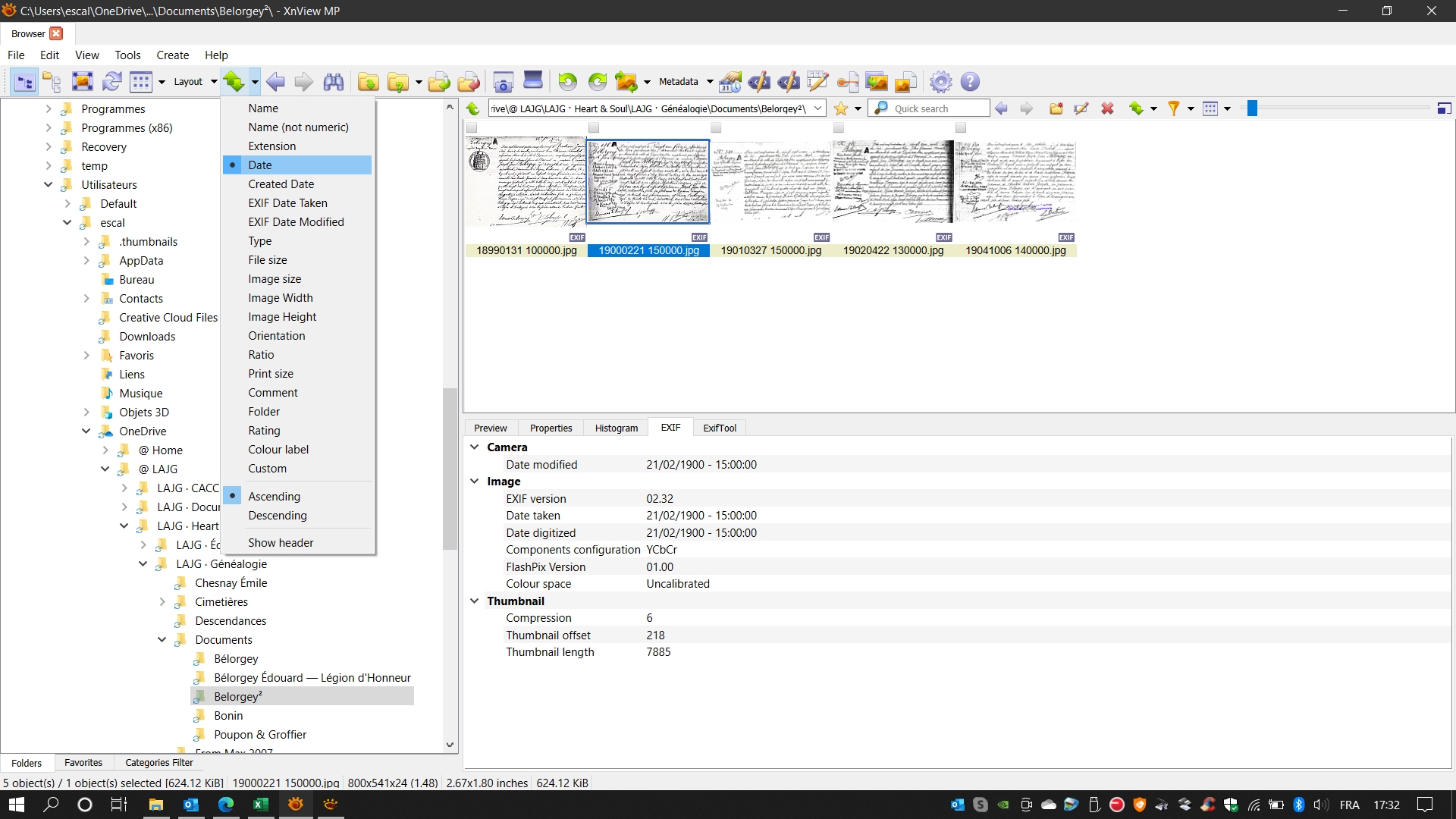 — Then again, if I rename the 1900 files by some other tool and asked the docs to be sorted on the EXIF date created or modified, 1900's docs are not in the right place, as though the XnView/XnView MP could not handle this particular year.