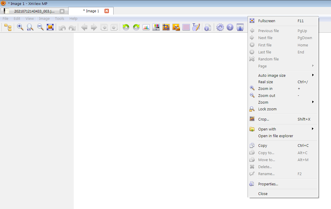 - If the dimensions of the viewed image are smaller than or equal to XnView's window size, a right mouse button click on the image invokes the context menu.