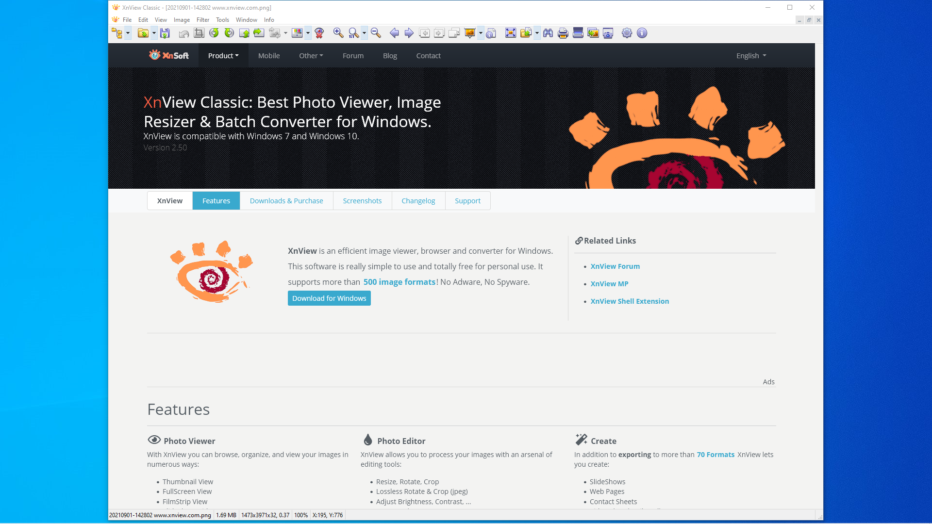 3.) For the 3rd snapshot I adjusted/resized manually the XnView window so that the full height is visible IN A WINDOW (!).