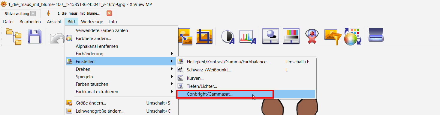 Effect: Browser mode/Image/Adjust/ "Conbright/Gammasat" (swedish?) instead of Contrast/Gamma