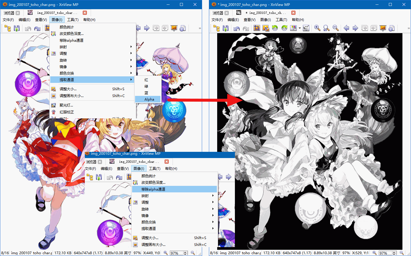 Neither removing the alpha channel nor extracting the alpha channel is correct with this 8-bit index png. ↓This is the source image