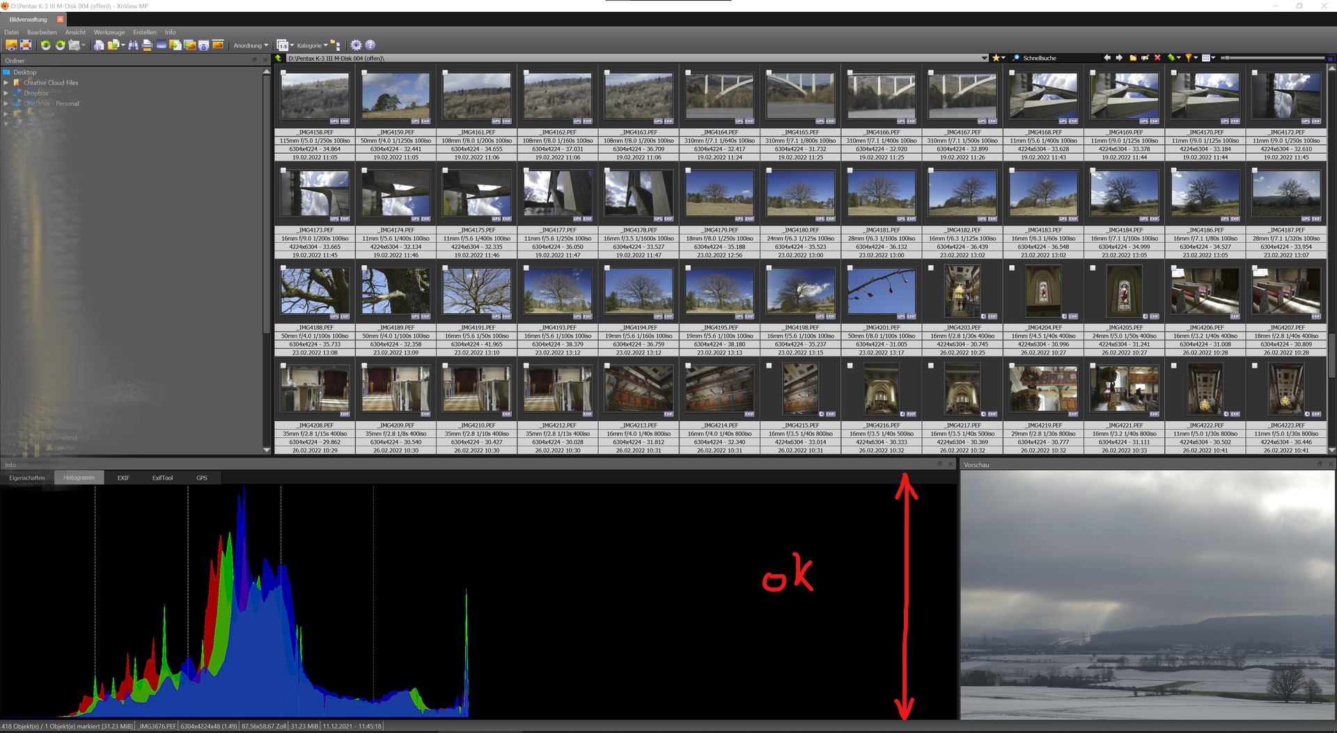 Screen resolution is 4k. For miniature are 4 lines and 12 colums selected. After reopening XnView MP there are 5 lines. Last line ist not completly to see. Labeling ist partially covered.