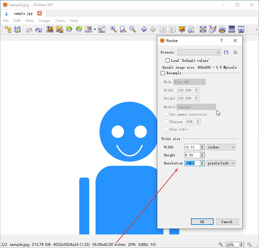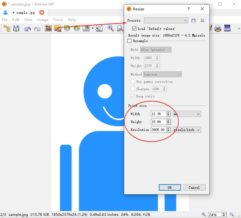 - If I specify DPI and print size, the automatically calculated pixel dimensions of the resampled image are also incorrect