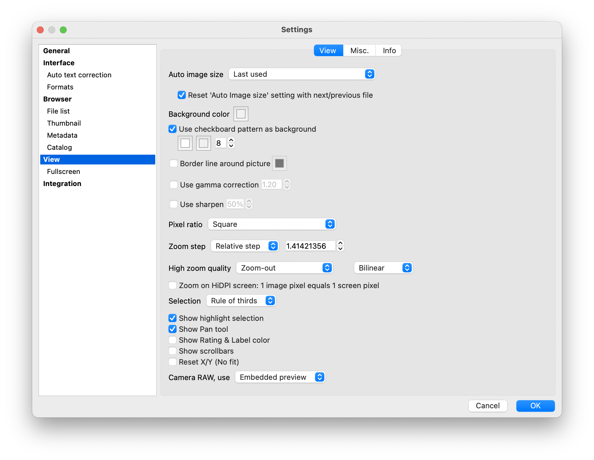 - Set Auto image size to Fit image to window width.