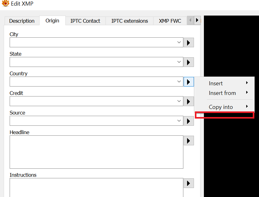 2. Items in 'Incert from' list shall be diabled if corresponding fields are empty (like in 'Edit IPTC' form)