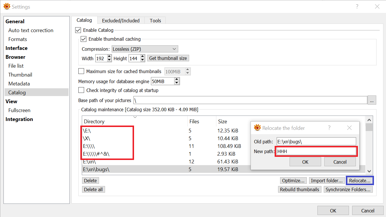 Re: 1.3.1 - catalog - 'Relocate folder' has no path validation