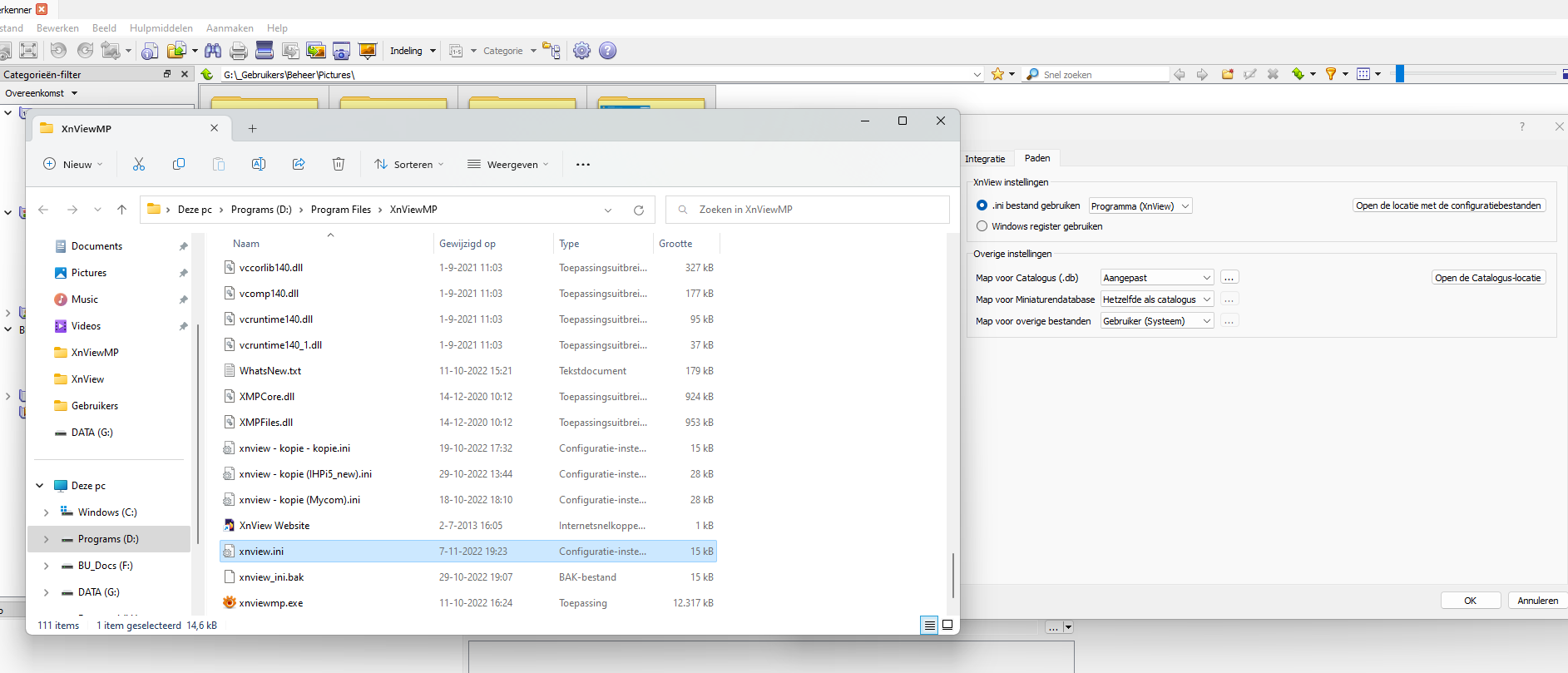 where do you have copied your xnview.ini? in settings>Integration - Paths, what do you have?Fres wrote: Sat Nov 05, 2022 3:21 pm Your advice was just to remove the file. Is that all? XnViewMP requires Xnview.ini isn't it? Should the file not be installed in another location? I followed your advice (off course) but XnView still does not start up with my settings.