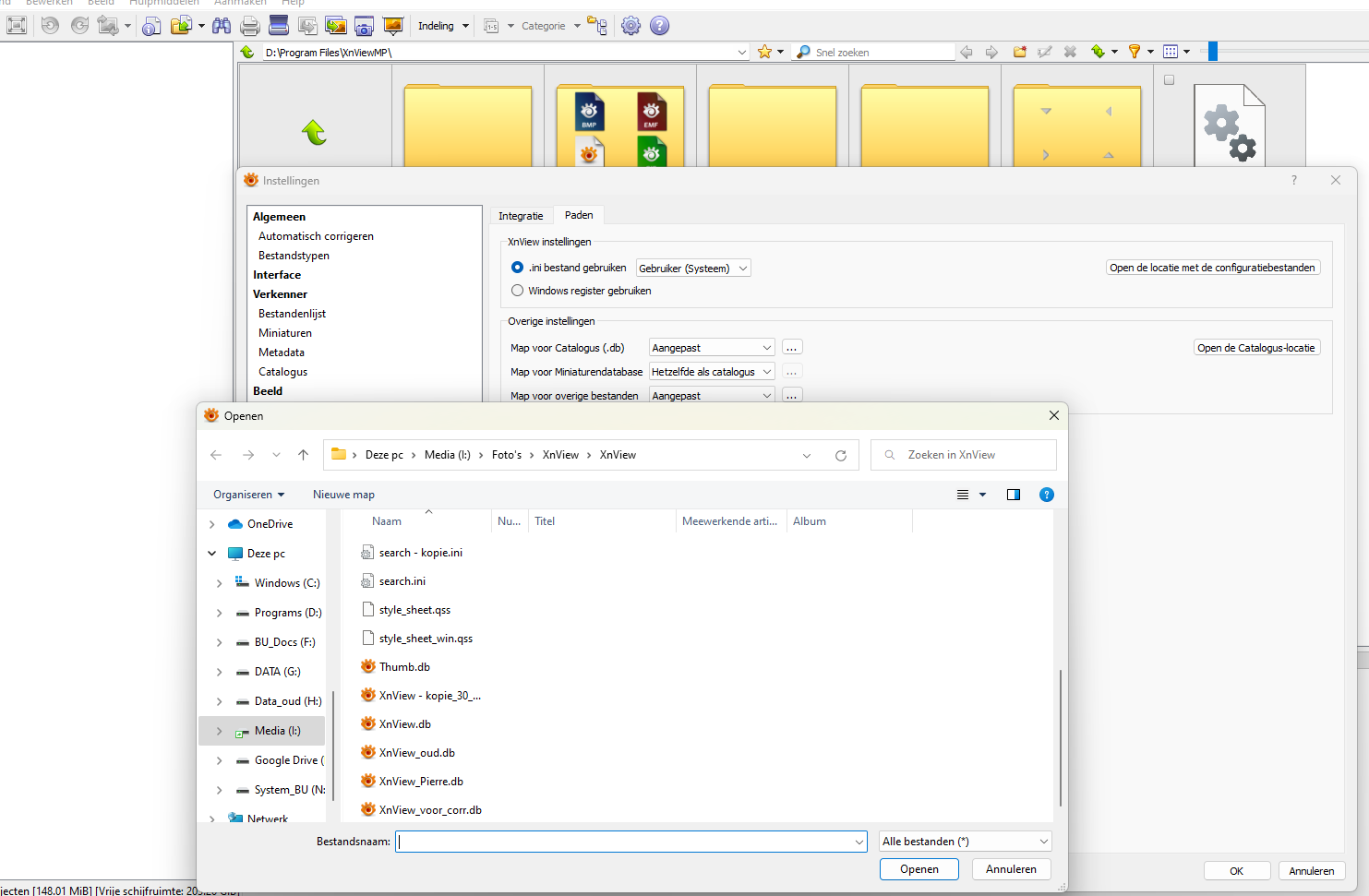 Following your advice I changed the location of the Xnview.ini file to the Appdatalocation. Now this location is found correctly. But would it work at all with a copy of the ini file from the old computer? Or do I have to go over all settings agian in a fresh ini file? I renamed the other Xnview files in Roaming as I prefer to have the db and Thumbs in a location that can be backup more easyly (same location as foto's). Re screenshot. Although I indicated the new location for the db (and coinsequntely thumb) in the integration settings, the db is not found (even after a save of the settings) and instead the desktop is shown as db location.