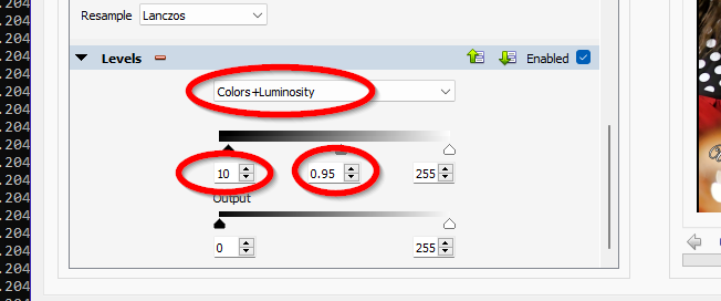 I added the Levels action and changed the settings to Colors+Luminosity 10 .95 255 I saved this as Boost-Light-and-Color.xbs