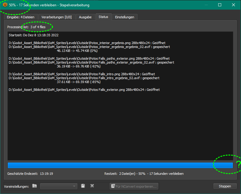 The progression bar of the batch-converter is always missing the last image, not showing up as "in progress".