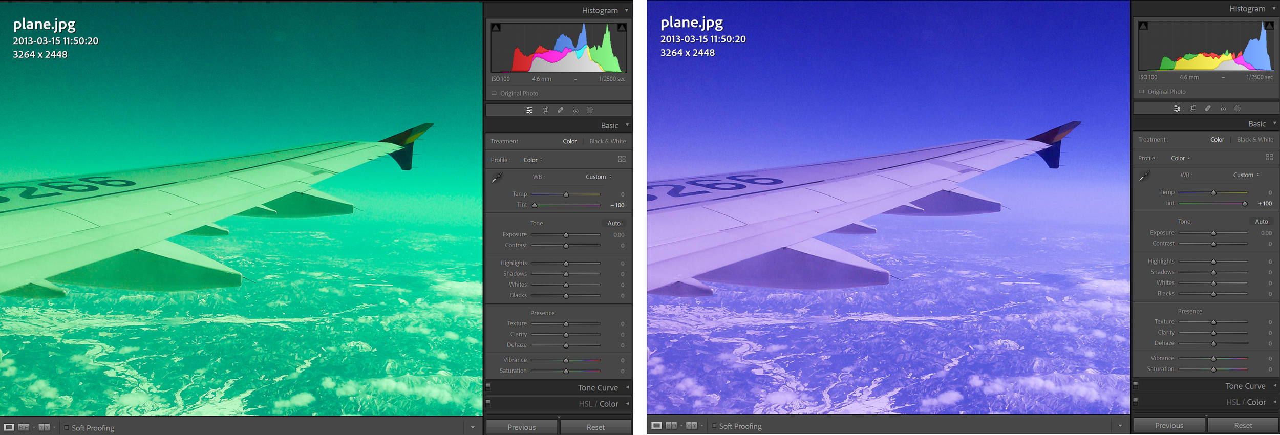 Note: programs have some difference in representing Temperature/Tint for JPEG/RAW