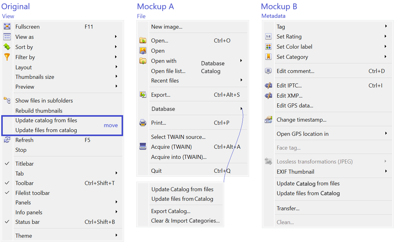 - move 'Update Catalog' commands from View to Metadata menu (done in 1.8.4)