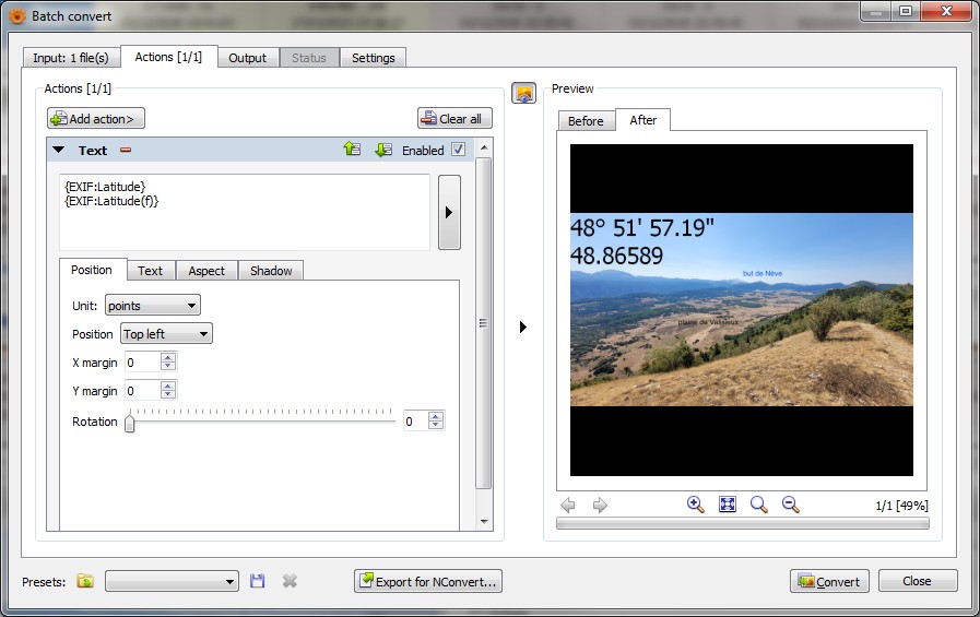 - Copy latitude, longitude in native format into "IPTC caption" :
