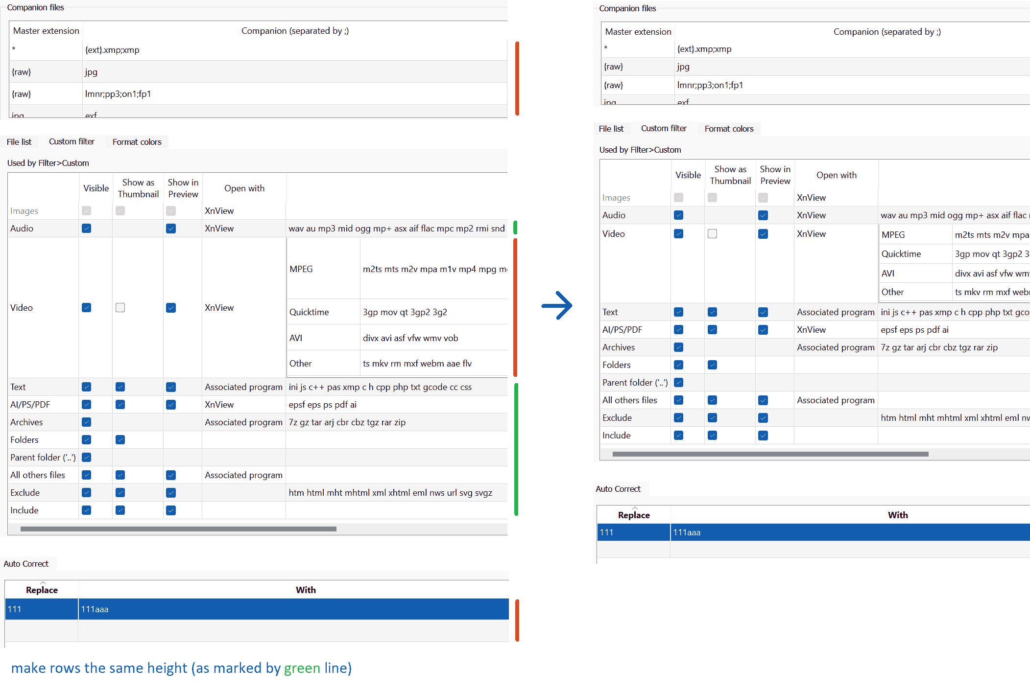 Correct, but their single row height is not the same as single row height in 'Custom filter'.